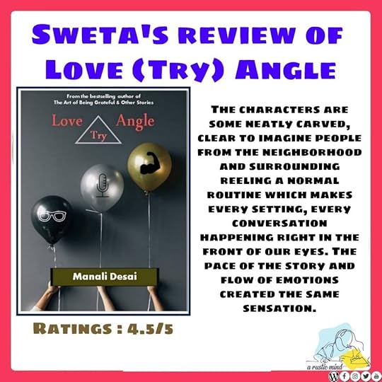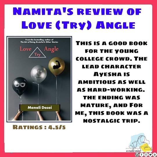 Check out my detailed review of this book hereAfter reading it, I reached out to the author asking her if she would be my guest on the #AuthorCollaborative. Before we got on to conversing about our books and writing, she read Love (Try) Angle and here’s what she had to say about it.