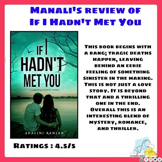 Books that deal with mysterious deaths and the suspense around it, have always managed to give me sleepless nights; more out of fear than curiosity. Nonetheless, I do indulge in them once in a while. One such recent read of mine was If I Hadn’t Met You by Shalini Ranjan.