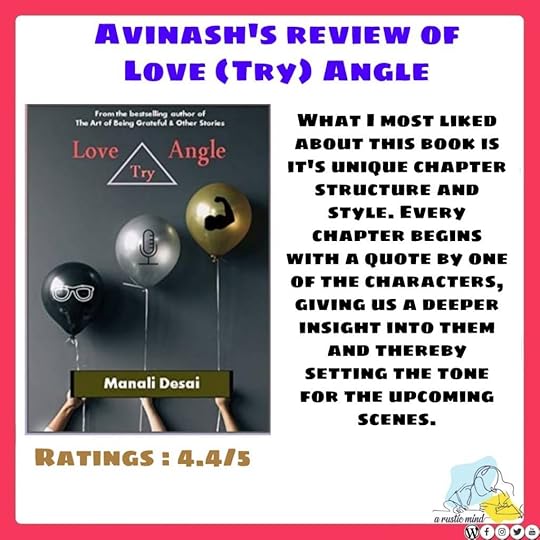 Read my detailed review of Saini Subramanyam vs. 2020 hereWhen I reached out to the author, Avinash, asking him to be a part of the Author Collaborative, he was game for it, right away. Of course, before we could do the session, he had to read my book Love (Try) Angle. Here’s his take on it.