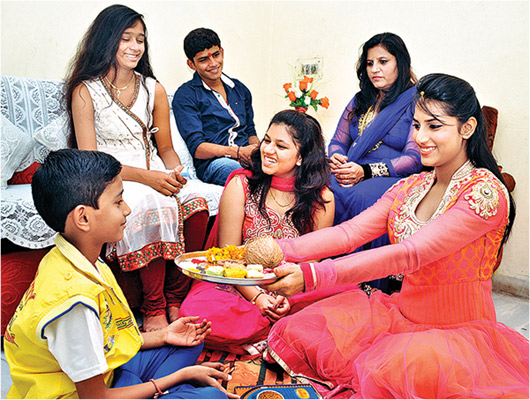 In this state, the day after Diwali is celebrated as tika. On this day, the sisters apply a paste made out of saffron and rice on the foreheads’ of their brothers. This is done to keep away all difficulties, dangers and troubles away from them. Gifts and sweets are exchanged between the brothers and sisters after the tika is applied.