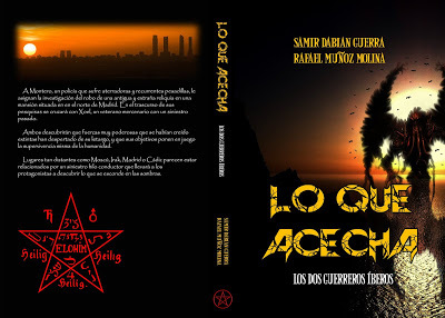 Le díptico Lo que acecha está compuesto por Los dos guerreros íberos y Las puertas del infierno, escrito a cuatro manos por mí y por Rafael Muñoz Molina, y se trata de nuestro particular homenaje al universo creado por H. P. Lovecraft. Una actualización de sus mitos pasada por nuestro tamiz de dos frikis amantes de las películas ochenteras y los libros de fantasía y terror. Cada uno de nosotros escribimos desde el punto de vista de uno de sus dos protagonistas: un joven policía y un veterano mercenario. Todo surgió como un experimento, totalmente escrito con brújula, lo que fue un poco caótico. A veces uno sacaba una línea argumental o un conflicto y el otro pensaba: «¿Y ahora que hago yo con esto?». Ha sido muy divertido, pero agotador.
