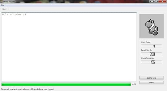 Es un pequeño y sencillo programa llamado Write Attack!, en el que podemos fijarnos un target de palabras para intentar escribirlas de corrido, evitando que una mascota animada se ponga triste y finalmente se enoje, destruyendo todo lo que habíamos creado hasta el momento.