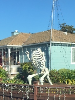 Last week, I received some pix about yet another dinosaur-in-the-front-yard lawn ornament. This Rex is dressed for each and every holiday. He’s even got his own Facebook page!
