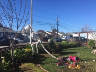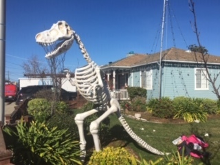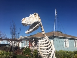 My niece, Hilary, moved into a house that is two doors down from this gigantic dinosaur. She thought the neighbors had set it up for Halloween…but no! Oh no, no, no. This dinosaur is a year-round yard decoration.