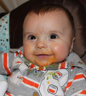 And he's starting to eat food! Starting with all the P's...sweet potatoes (ugh), prunes (double ugh), pears and peas.