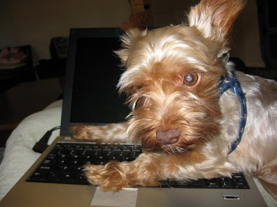 Three yippee dogs who have cyber rivalry and who like to throw their bodes across my keyboard (photo attached) when they think I should be their chew toy rather than a typist. LOL!