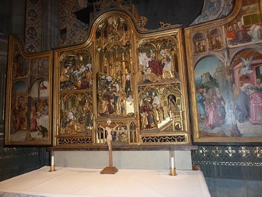 On the one hand, the art and architecture tends to be something special, and there are many treats in the side chapels, like the reredos pictured here. There is majesty here, a sense of awe and wonder, and an abundance of history. On the other hand, they were built at tremendous cost when the people round about were probably struggling to survive – and are maintained at great cost too. They represent a reaching out to the divine and an attempt to glorify God but also there’s an element of building up brownie points for the hereafter, reducing time spent in Purgatory and the like.
