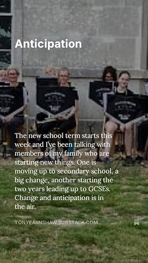Anticipation is the subject if this week’s blog as new term starts, new academic year, and the summer lull in many activities comes to an end https://tonyearnshaw.substack.com/p/anticipation
