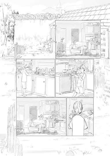 Still playing with basic ClipStudioPaint, and battling LongCovid/CFS. It took me an age to do this page, which would usually only have taken a day and a half. But I’m very happy with the results. I don’t usually use tone in my comic book work. My style is usually more stark black and white. I’m still in two minds about it, but willing to explore it as a style for now as I think it best reflects the quieter tone of this project.