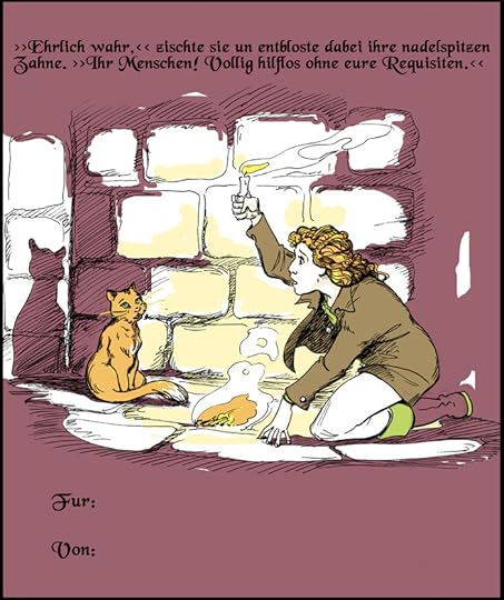 For non German speakers, the text is a translation of 'Honestly,' it hissed, showing all its needle teeth. 'Your species! So utterly dependant on its props'