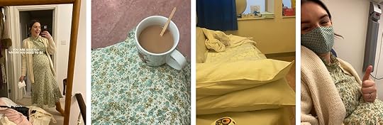Fast forward four days to the Sunday evening. After settling down to watch My Best Friends Wedding (we’d initially lined up the last couple of episodes of It’s A Sin, but my overly emotional baby brain couldn’t hack it), and Christening Joe with his first viewing of this scene– we headed up to bed. After spending the previous weeks waking up around 3am with horrendous heartburn and the need for endless wees, it was nothing short of a miracle when I checked the clock to see that I’d slept through to 5:30am (a lie in!) After getting up and thinking I needed the mother of all wees, I was greeted with what can only be described as a true water-breaking spectacle. I couldn’t bloody believe it! This is what they said it could be like- and after waking Joe with a, ‘THEY’VE BROKEN! MY WATERS HAVE GONE!’ It suddenly felt like Christmas morning. The lights were on and the kettle was boiling; but because I knew things could still take a while, I tried to keep my calm- potter around, get slowly ready- which madly consisted of doing my make up and putting on a nice dress (in fairness to my pregnant brain, I thought a dress would be apt because I could give birth in it- not considering I wouldn’t actually be wearing anything at all, but I’m glad my favourite Ghost dress got a special outing)- as I phoned the birth centre to let them know what was going on.