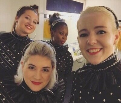 Me with my friends Arielle, Hannah, and Sarah, about to go see Six!