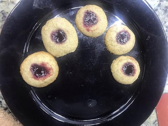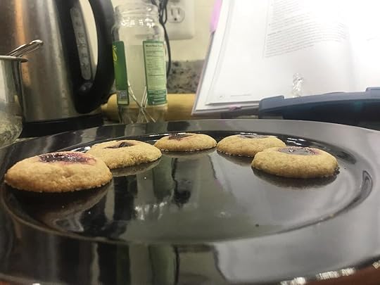 Cookie Science: (this section written in like, November) I engaged in a bit of cookie science! I’ve made raspberry thumbprint cookies twice now for John, but I’ve been unhappy with how hard and crispy they were. In an effort to make them fluffier and lighter, I switched out half the butter for margarine, whipped the butter/margarine/sugar for longer, and chilled the dough. I made the cookies in five batches (represented by one cookie each in the picture, from left to right), each progressively in the fridge for longer before going in the oven. I also lowered the baking time by a minute. My official cookie tester John decreed that batches 3 and 3 were the best.