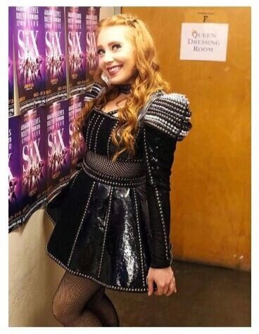 Zara McIntosh (West End), who alternates for Howard and Aragon. In these photos, she’s made up for Howard. It’s clearly the same or similar style dress as the one McFarlane is wearing.