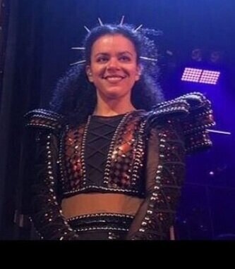 Right: Cherelle Jay (West End) - Dressed as Boleyn. The top seems very similar to the Duncan outfit in the middle, with all its similarities to Boleyn’s dress but the bottom has the Cleves belt and the epaulettes seen in the Manser outfit.
