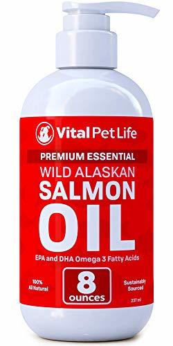 Salmon Oil for Dogs, Cats, and Horses, Fish Oil Omega 3 Food Supplement for Pets, Wild Alaskan 100% All Natural, Helps Dry Skin, Allergies, and Joints, Promotes Healthy Coat, Helps Inflammation, 8 oz