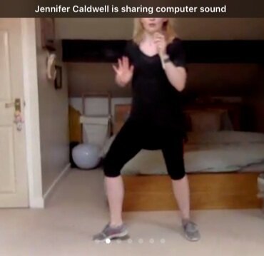 At the end of the class, she actually went through and watched /everyone/ do the routine, specifically going from screen to screen and calling out everyone’s names. It was a little intimidating but fun to actually know she was looking at you!