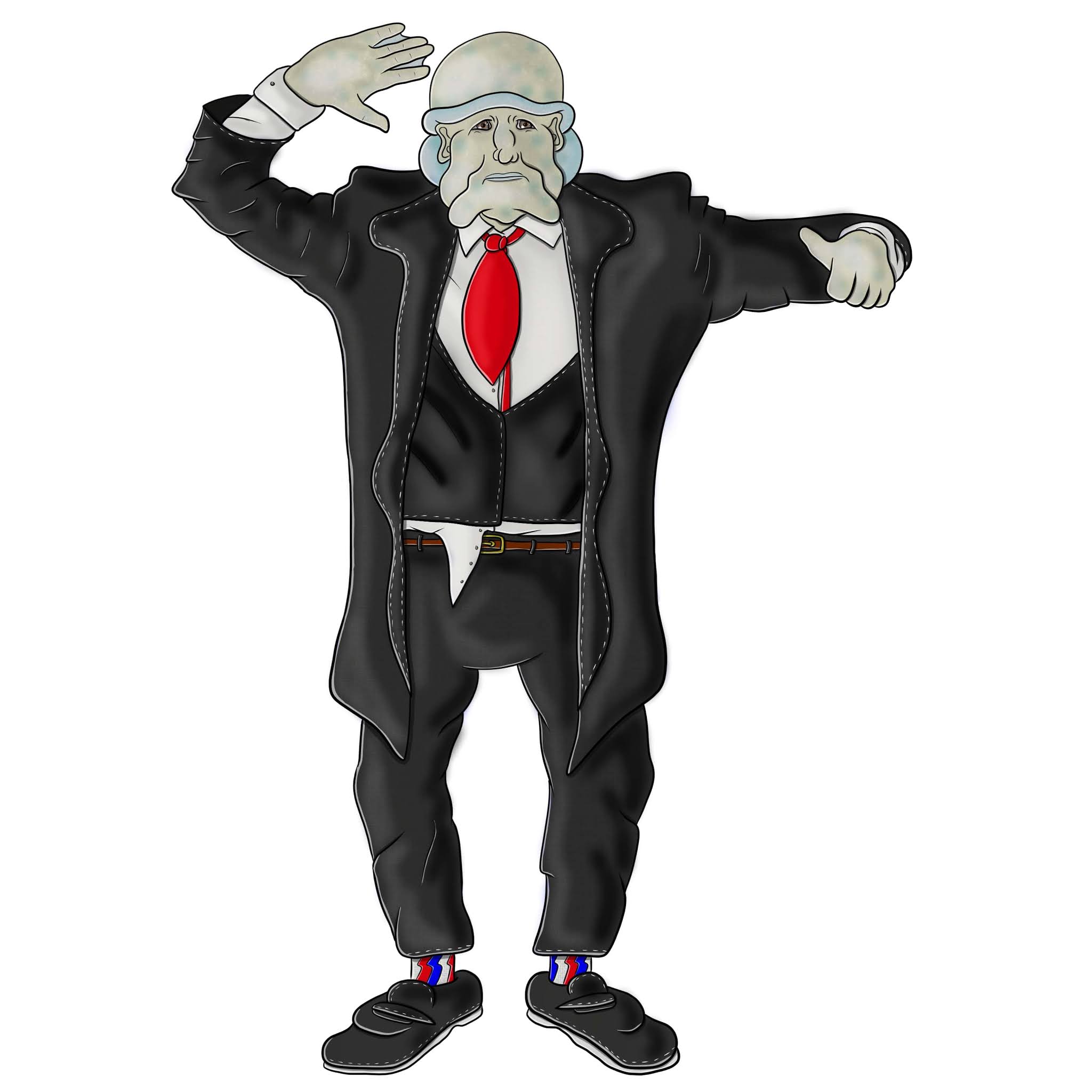 Obviously, I based this character on the (inexplicably) current prime minister of the UK - Boris Johnson. In a vacuum Johnson is quite a funny character, and he's profited enormously from that view of him. To avoid churning out another 'bumbling-Boris' caricature with little in the way of actual satire, I endeavoured to focus on the cost of having someone like him in power. I also gave the character some markedly nasty edges.