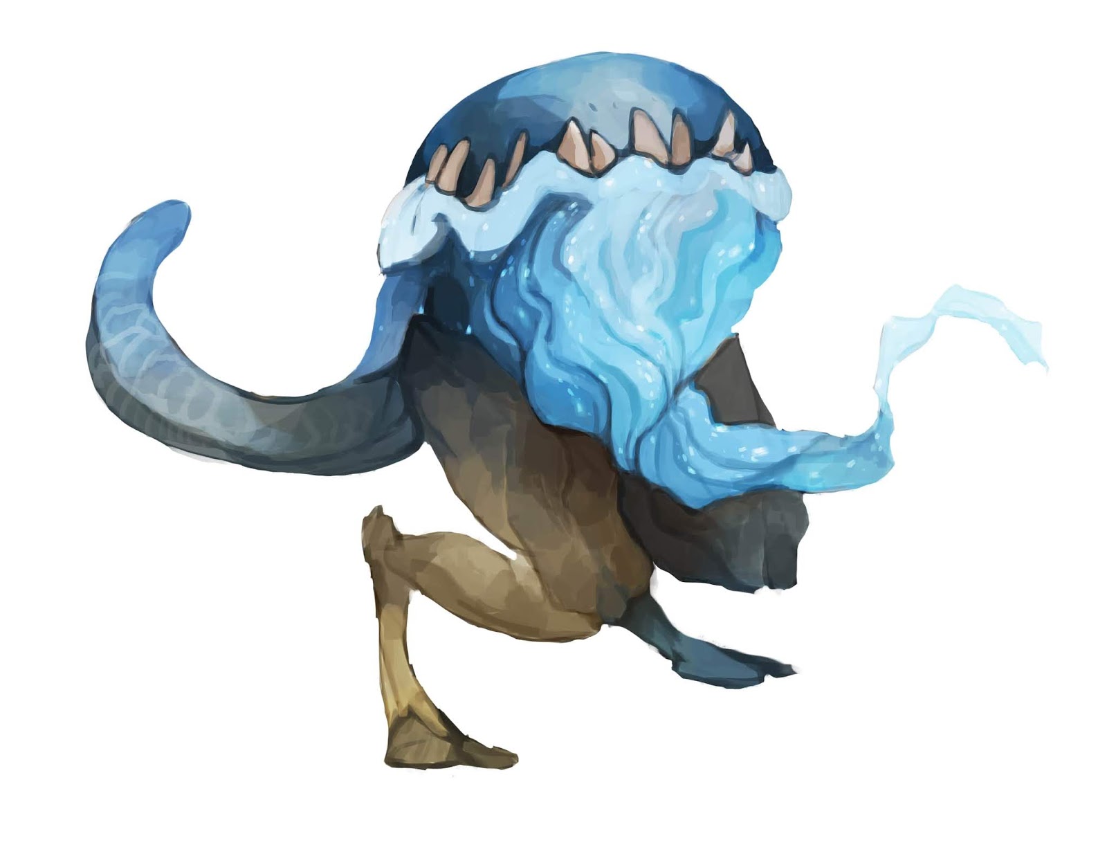 These beasts are magickally imbued with faer that make them invulnerable to the cold. Combine that with the legs of a goat and the body of a tadpole and you get one of the most ferocious predators in the Yelps Mountains.