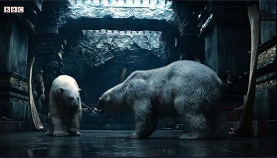 In His Dark Materials, we find it in Chapter 20 of Northern Lights, titled “Moral Combat”, when Iorek Byrnison and Iofur Raknison do battle, instigated by Lyra’s trickery. It is a crucial moment in the book, because “Iorek and Iofur were more than just two bears. There were two kinds of beardom opposed here, two futures, two destinies”. They first challenge each other with ritualistic words, and then it all kicks off with a Homeric simile just on cue: