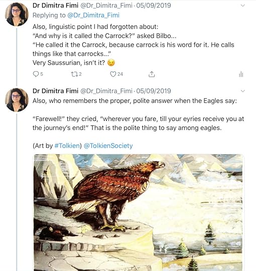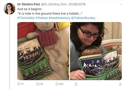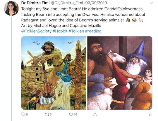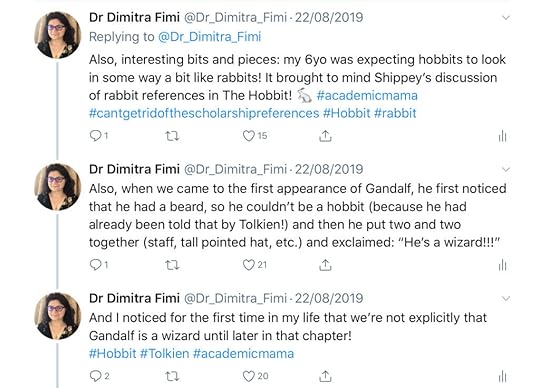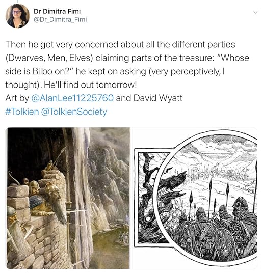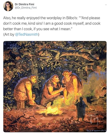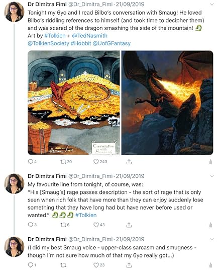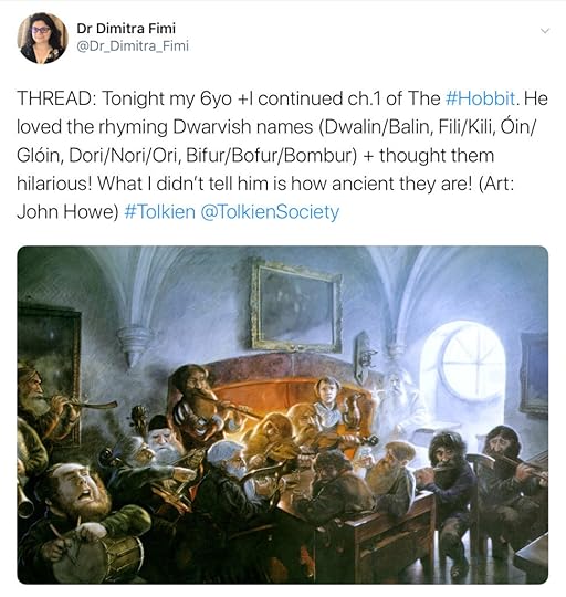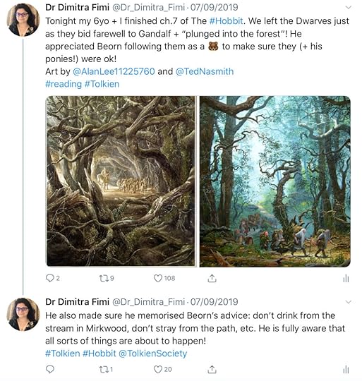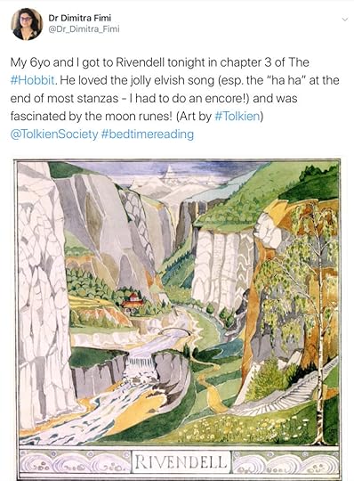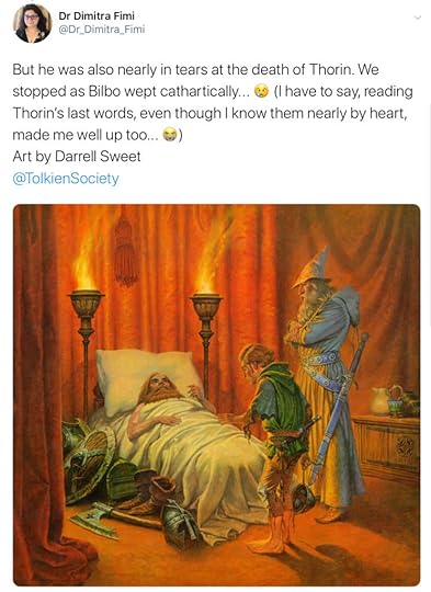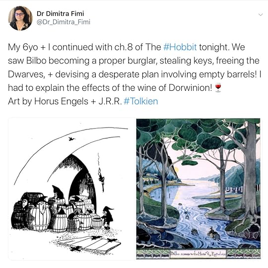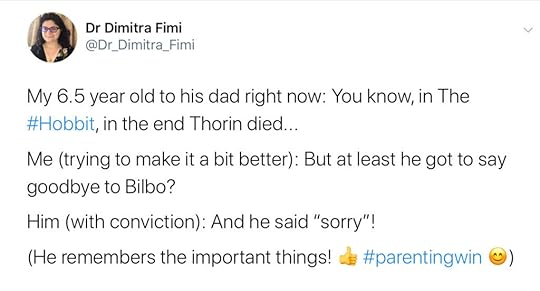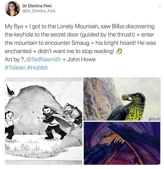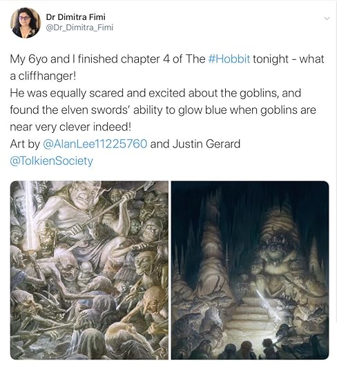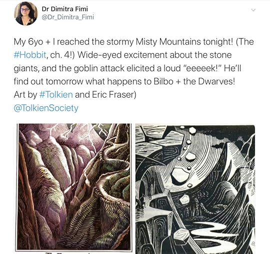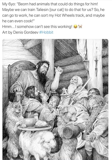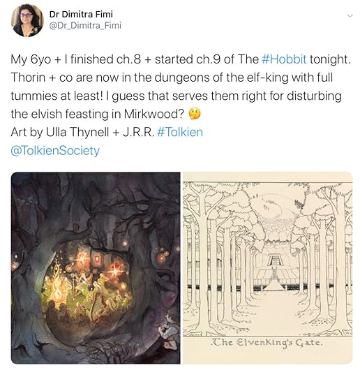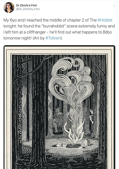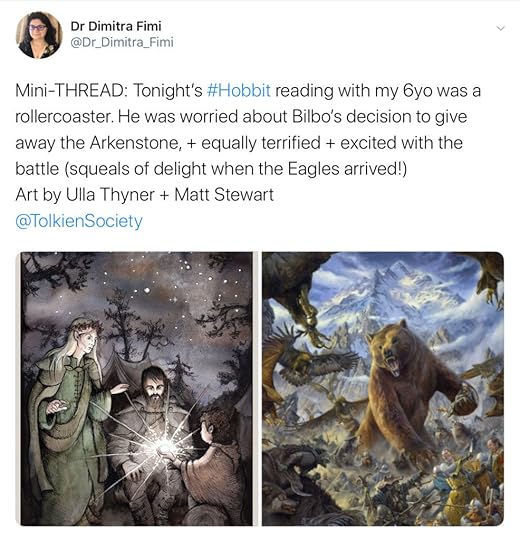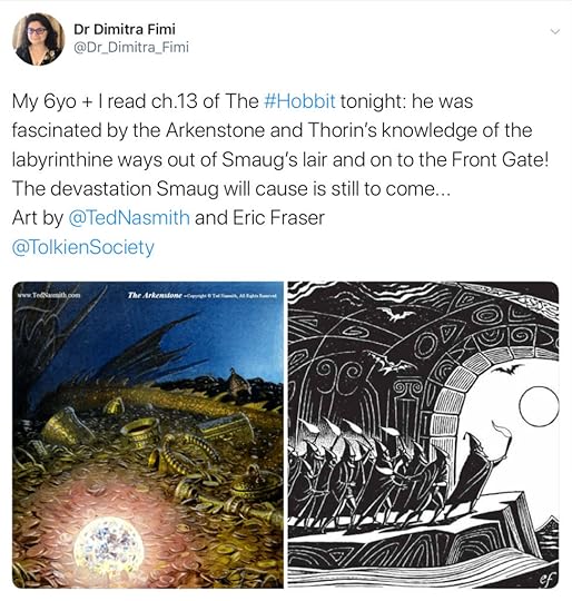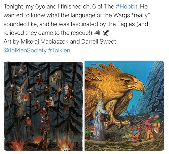 So this was my Twitter journal of reading The Hobbit with my son. Here are two bonus tweets, one during the time we were still reading the story, and the other a few weeks later: