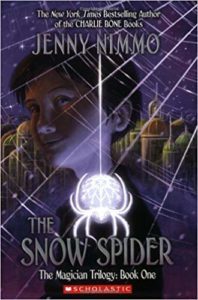 A rather different representation of the Halloween/Samhain equation can be found in Jenny Nimmo’s The Magician Trilogy. In the first book, The Snow Spider[image error]The Snow Spider, Nimmo places two crucial events during Halloween: Gwyn’s birth, and Bethan’s disappearance. Gwyn is a young magician, who has inherited magical power that returns to his family “once in every seven generations” (Nimmo, 2003, p. 13). His birth during the magical, liminal time of Halloween, singles him out as special, but his Nain (Welsh for “grandmother”) also links this date with Gwyn’s ancient heritage: