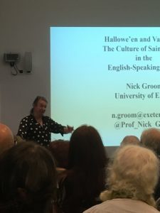 The lecture, titled “Hallowe’en and Valentine: The Culture of Saints’ Days in the English-Speaking World”, was given by the brilliant Professor Nick Groom (University of Exeter). Professor Groom argued for the influence of printed literature on the shaping (or reshaping) of folklore (from Shakespeare to the 18th century) and a lively discussion followed.