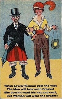 Men could not tolerate that women left home to join suffrage movement in the beginning of 20th century. They were so scared of taking care of their children! They feared that if women could get their rights, men would lose their’s. They still have this fear.