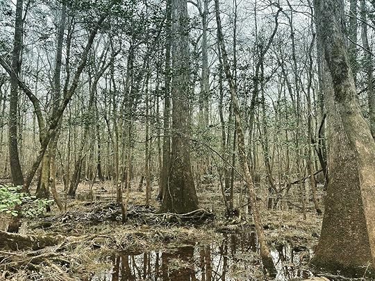 I missed the palmettos, the swamps, the hanging Spanish moss. You never grow out of a landscape. Your heart never leaves your own red dirt, your sandhills, or your home-like sucking quagmires (luckily, I moved into another swamp, but I miss my swamp, too, since my new one is tragically devoid of both bald cypresses and alligators). I stepped out of my car in Congaree National Park and its quiet smacked me across the face. I’d written about it, but I’d forgotten. I almost cried; I’d written about it Blood Cypress, from four hundred miles away, and I got it right: