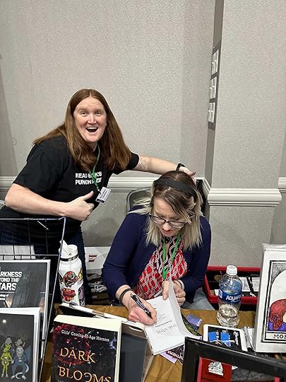 Ryan Marie Ketterer sold the last copy of Ink Vine three hours before the vendor room closed! Here I am signing it for the reader, because Chelsea Pumpkins is a goddess and snapped this fantastic pic. I’m surround by rock stars. I’m also missing pics of Vin and Johnny and Jenny …