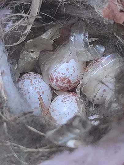 Converting that room gave us a prime view of the bird feeders. Really, the tiny dinosaur drama does wonders for my mental health. Bluebirds battle cardinals; the Carolina wrens have a disconcerting tendency to stand back and watch others birds fight, like tiny spectators at a fight club. The chickadees and titmice spent two weeks fighting over one of our birdhouses. Since the chickadees won, the titmice are currently nesting in my deck railing. They’re nearly murderous with rage if we venture too close.