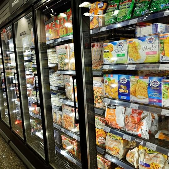 First rule of writing: hoard notebooks. Second rule of writing: never write in your 28 notebooks that you have hoardedI had an amazing new idea come to me in the frozen aisle of the supermarket last week. It asked me to work with it by the frozen breaded turkey burgers. All my ideas come to me in the freezer section of a supermarket. Most arrive as I am reaching for the fish fingers but this one pinged in as I gazed longingly at the freezer food. Now that I have been betrayed by a new idea (see above) I am wary of them. I have written it down in a notebook and I plan to write it next. Watch this space.I will leave you with a photo of a supermarket freezer aisle in case any of you are struggling with new ideas. The colder the better. Good bye my friend – until next week!