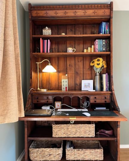 I blame my new antique Gothic writing bureau. Isn’t she beautiful? My husband found her on a second-hand church furniture website.