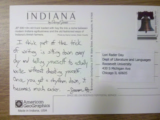 I ran into him at a back-to-school party, and I asked him how he did it. He took a swig of beer and spoke the words I have been quoting ever since: "Well, I'll tell you, Cathy. Every day, I'd write two pages. And then I'd play golf." [Inman has since informed me that he was playing BASKETBALL that summer, not golf. My apologies.] I felt like Moses at the Burning Bush, hearing the voice of God. Really? It was that simple? Well, of course it's that simple.