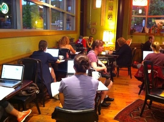 Writing is a profoundly meditative activity, and to do so in the presence of others reminds us that we aren't alone in this endeavor. Anti-NaNo-ists are troubled by the idea of millions of people engaged in the act of writing—alone or in small groups, in real rooms and virtual ones—but I don't understand why they are so troubled.