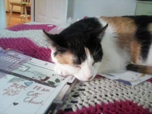 obviously not mine: I am a catThe other sticky notes re shades of dusty pink and purple and that kind of thing. Those are for the historicals, and they fit in the pink sticky note holder Mama Anna got on clearance. She is super into her desk aethetics. This may include rescuing her secretary desk from stuff jail when Aunt Linda is on vacation at the end of the month, and this may also include her rocking chair. That chair has a history, as it is older than Mama Anna, and I am told that Grandma Erma (I have to wait for Rainbow Bridge to meet her) rocked Mama Anna in that chair, so if Mama Anna rocks me in that chair (I love being in her lap) then the tradition continues to the next generation. Mama Anna is very much set on getting that chair or the likes of it into the apartment, because he needs a dedicated reading (and cat lap giving) place that is not her office chair or her bed (it is also Papa’s bed, and he doesn’t care for a big reading light in his face when he is trying to sleep. He already has a cat climbing all over him, so I don’t blame him on cutting down on distractions. Yes, I am that cat.) I have already put in a request for a cushion on the seat, because I want to sleep in it when she is not using it.