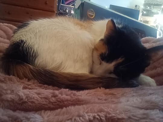Didn’t mean to post sleeping Storm, but who doesn’t love a kitty picture?Storm is pretty chill about coming into the new season, which is par for the course. She does have a few things to say about the new desk setup, as her usual sproing lands her on my keyboard. There is still some space for her on the desk, but at the moment, she seems best pleased to watch from the bed. She is getting used to the kitty sling. It’s one of her favorite beds at the moment. We haven’t tried putting her in it yet, but so far, so good.