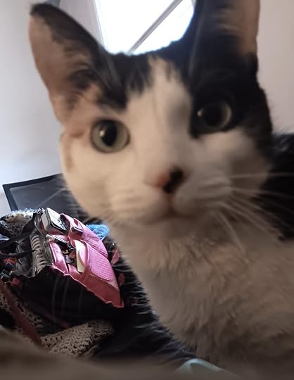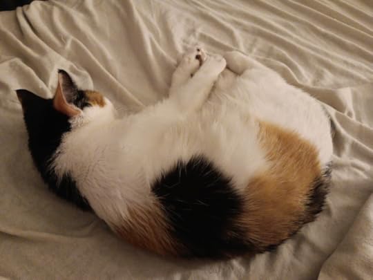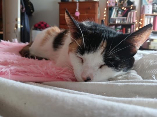 Hi, everyone! I get the next blog. Wonderful Therapist is good at scheduling appointments around days that may require some extra support. This was definitely one of them. As interesting anniversaries go, this was a relatively easy one. We’d expected to be between homes for a week, maybe a month. It ended up being close to thirteen months. Thankfully, around one month in, we got a new family member – Storm- who is currently happily snoozing on Real Life Romance Hero’s pillow, while RLRH does his computer things. She’ll be by to check on me soon enough, and when she has deemed that I have had enough time at the glowy box, she will sit on my keyboard, rest her head on my right hand, and refuse to move until I get up, then lead me to bed.