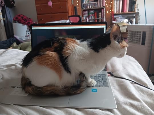 One would think that a month of sick would be great for reading. It was not. It was great for watching YouTube. We will try again on reading this week. I definitely have enough books, both paper and electronic. Right now, I am sitting in front of a gorgeous turquoise retro-style fan, near an open window, in my comfy office chair. The desk is kind of chaotic, because this TV tray thing has reached the end of its usefulness, so I am small desk shopping.