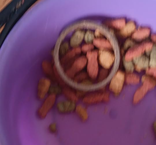 My bowl, with crunchies and washi rollAunt Linda noticed that there was a special guest star in my crunchies bowl. She wondered how that got there. It is not that complicated, really. There are a few reasons. First, I might have put it there because it is a safe space for me to find it when I want to play with it later. Second I might have been playing and have cat-specific reasons you hoomans would not understand. Third, and maybe most likely, I probably got excited about the food and forgot I had one of the best toys ever (seriously. They are SUPER fun. You should try one.) in my mouth and started eating and it fell into the crunchies and then I did something else and that’s why the awesome ring of cardboard was still in my dish.
