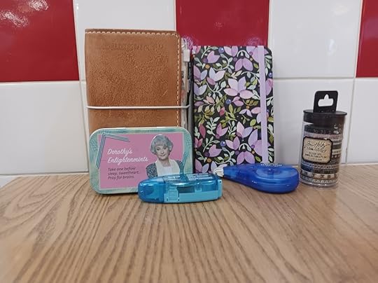 Everyday carry, spring 2024Welp, it’s spring. I have the window open as I write this. My ensemble for the day is a sleeveless shift dress with an unzipped oversized hoodie over it. My home office is an absolute mess because of spring cleaning. Next week means a trip to the storage unit, to put away things we aren’t using a at the moment and get out some things we’d stashed for the winter. A couple of days ago I (finally) set up an actual bookcase to hold the vintage historical romance novels that are te focus of my current reading. I have a lot to say about the whole vintage romance thing, but that is another topic for another day.