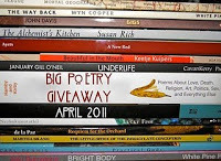 Yes, I'm taking part in April Big Old Poetry Giveaway! Thanks for asking and to Kelli for organizing it. I'll be drawing a winner out of a hat on May 1, so leave a comment on this post (with contact information, including a working e-mail address) and you'll be entered for a chance to win one of these books!I'm giving away a copy of: