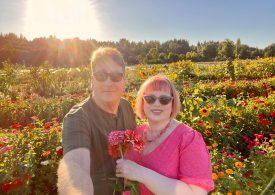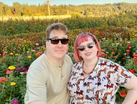 We also enjoyed “magic hour” at the JB Family Grower’s Flower Farm, where the lavender was mostly done blooming, but the sunflowers, zinnias, and dahlias were still putting on a great show. In two weeks, the farm transforms to a corn maze and pumpkin farm, so we’ll probably spend the remaining nice fall days hanging out there. Do we still want to make it to visit the red pandas at Woodland Park Zoo, see the art at Roq la Rue, and see La Conner as it turns to fall? Yes! But maybe we shouldn’t have expected to do it all in three days. Serendipity made each trip we made downtown unique and enjoyable, despite getting postponed at the hospital infusion center (now set for Monday?) and the traffic. Does the MS affect me in the amount I can do in a day? It does. Was it discouraging and frustrating to navigate the UW medical system between different standards doctors have and the infusion center? Yes. Am I exhausted now? Yes! Did I get much poetry (writing, submitting, writing blurbs) done? Well, I judged one poetry contest, so it wasn’t nothing, but it wasn’t as much as I would have done had it been cold and rainy. But we have plenty of that kind of weather ahead of us!