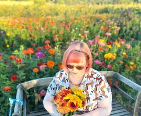 For now, just grateful to still be kicking and hopefully better off with the antibody treatment, ready to get out into the world and do a poetry reading with a friend at a cool indie bookstore this week, grateful for people reading and reviewing Flare, Corona in this busy world where poetry is so easily overlooked. Grateful for good weather, and flower farms near and far.