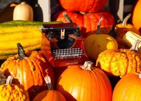 Typewriters, Pumpkin Farms, and Spooky StoriesThis week has been busy—a new review of Flare, Corona in New Pages, a few visits to pumpkin farms, a Halloween Mystery night at a local winery, and a re-reading of Osamu Dazai’s Blue Bamboo for the October winery book club and reading up on the lyric essay form. Plus, typewriters in the wild has a new location—growing in a pumpkin field!