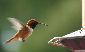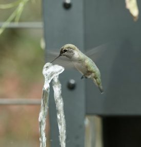 Female hummingbird drinking from fountain