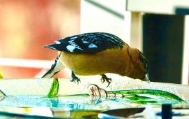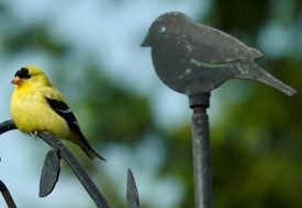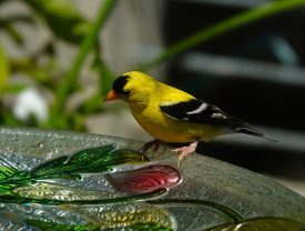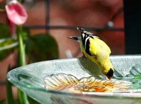 Goldfinch looks askance at fountain