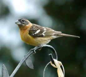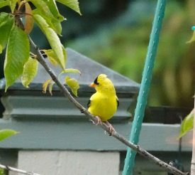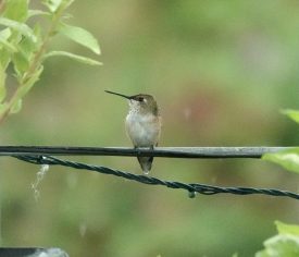 Gardening in the Rain and a Plethora of BirdsIn the coldest and wettest spring (and now, almost summer) we’ve had here in 50 years, it’s been uniquely dispiriting to try to garden. My pink lady apple tree has black mold on its leaves; many of my perennials have died, along with my herbs like rosemary and sage, my roses (but not my neighbors’ roses?) continually eaten by deer. So here are a few pictures of the hard-won successes – a sunflower raised from saved seeds, my lamppost growing with pink clematis and peonies. It’s cold and gray today, again. I’ve had the flu this week (almost inevitable with the nasty weather), so I’m mostly indoors, not doing enough, not feeling productive. But the birds. even in the cold rain, have arrived faithfully. Here are a few pictures—goldfinch on fountain with sunflower, flying pileated woodpecker, cherry tree finch, and salvia with female rufous hummingbird.