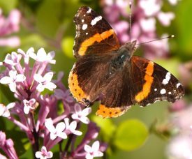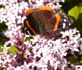 Our first butterfly sighting – a Red Admiral on our lilacs – actually two!