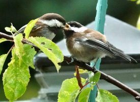 Our garden was trashed by the cold wet winter and spring—lots of stuff died or is dying of mold or related diseases – so we picked up a few new plants to put in the ground. It’s not like we lost a crop as farmers, but still, Glenn and I put so many hours into so many things that did not survive (or were eaten by deer) that it’s discouraging. It’s not just us—we’ve strolled many nearby usually-flower-filled spaces that have been decimated by either poor weather or construction (so much construction killing so many flowers and trees). Still, baby bunnies, chickadees feeding baby chickadees, and flowers cheer us up.